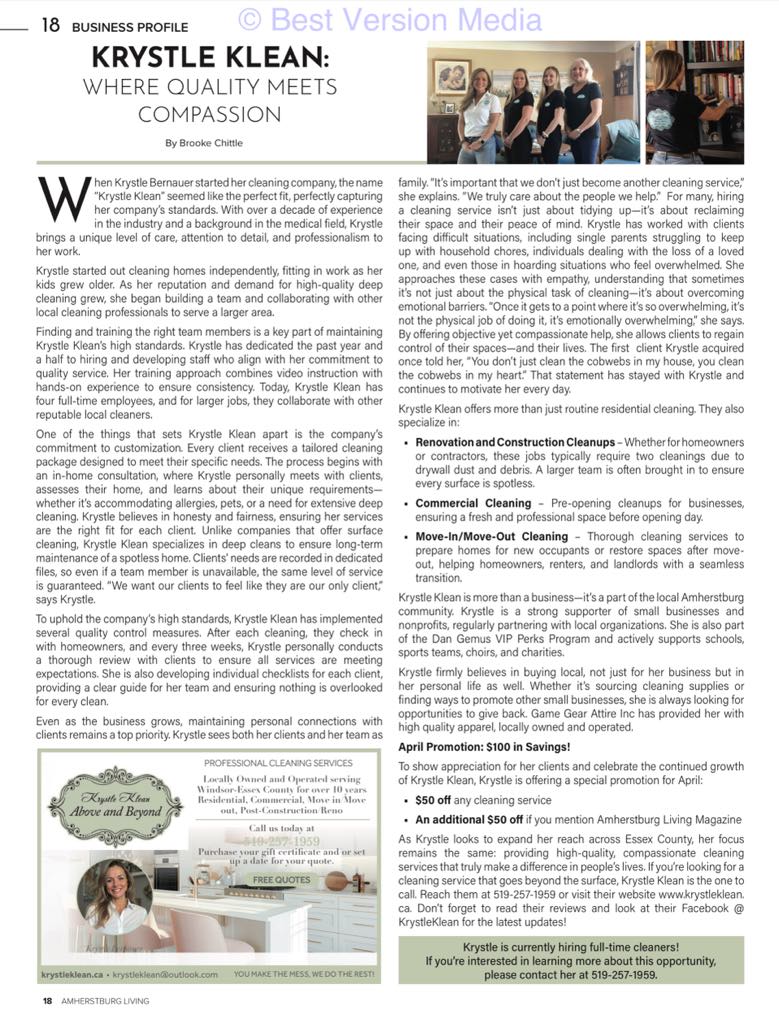 Hi, I'm Krystle, the owner of Krystle Klean. For a decade now, I've built a reputation for providing top-notch cleaning solutions tailored to the unique needs of my wonderful clients. I believe in the power of a clean and organized environment, to enhance the quality of life.